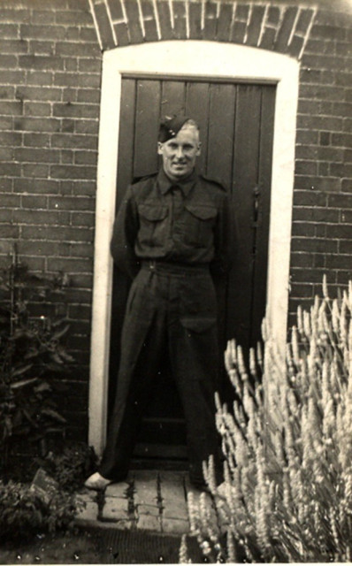 Ray Burcham outside Red House, Home Farm Road, Ellingham. Died as POW of Japanese WW2
